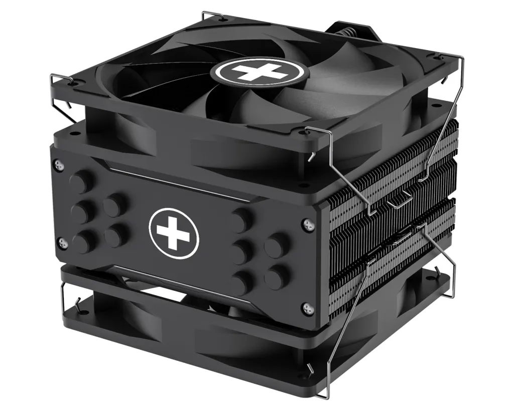 The compact M705D is a tower cooler with double fan from the A+ series. It has five extremely powerful black heat pipes, which dissipate 220W of waste heat to the countless cooling fins and thus predestine it for potent multi-core processors.