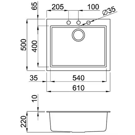 | Tap hole size | 35 cm |