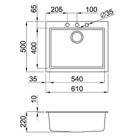 | First bowl dimensions (WxL) | 540 x 400 " |