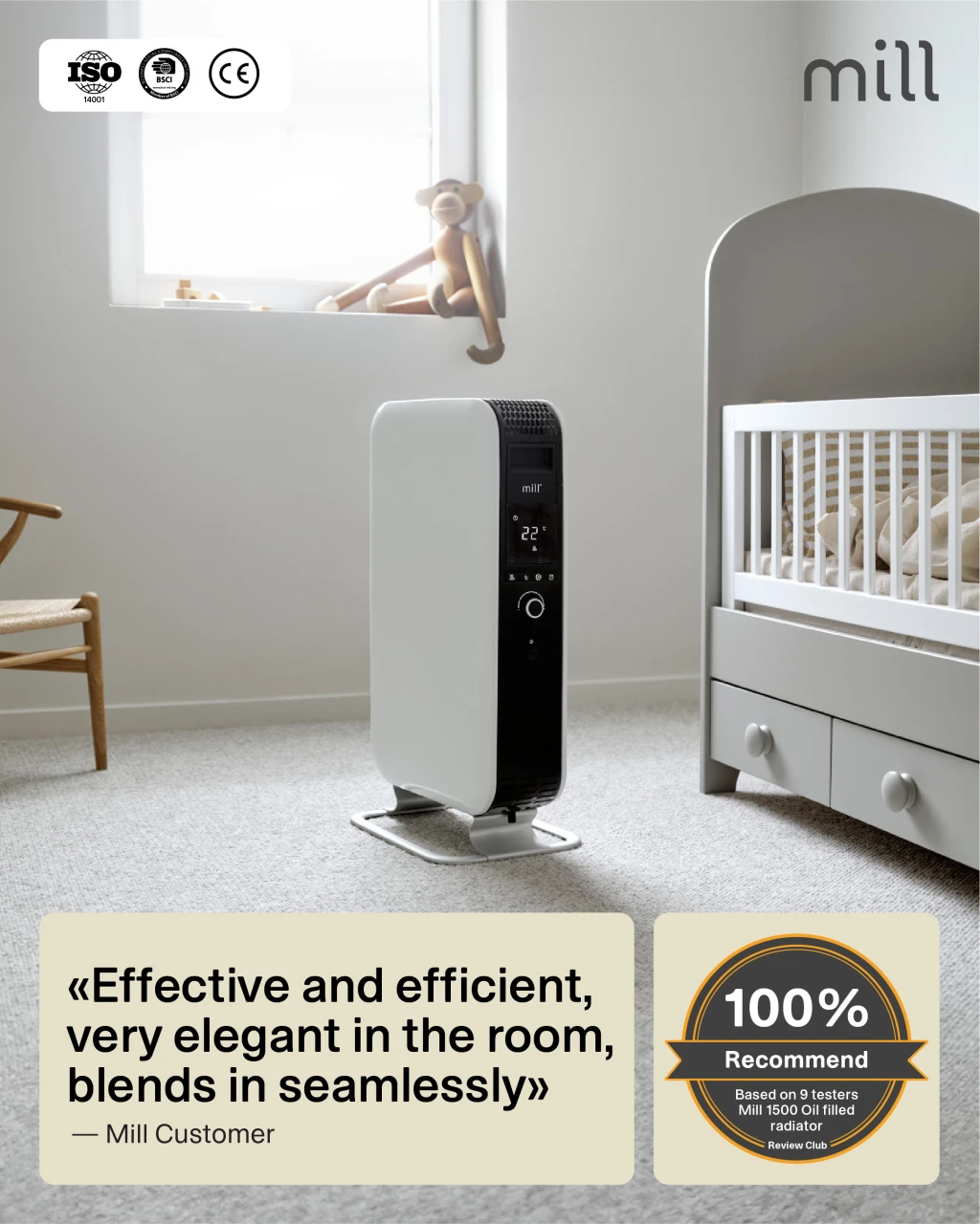 | Special features | Compared to ordinary oil filled radiators, our Mill Oil series are much more effective because of the closed structure of the heater which makes a unique chimney effect (patented “Heat boost” technology). For instance, our Mill Oil 1000W is as effective as a normal oil filled radiator with 2000W. |