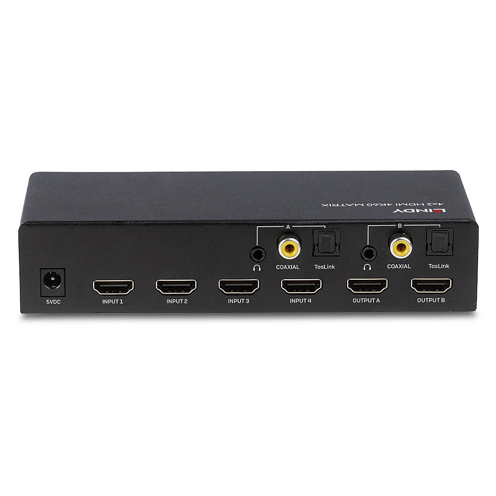 Lindy 38084. Toote tüüp: AV maatrikslüliti, Maksimaalne resolutsioon: 3840 x 2160 pikslit, Ribalaius: 18 Gbit/s. Korpuse värv: Must, Korpuse materjal: Metall. Väljundvool: 1000 mA, Väljundpinge: 5 V. Laius: 125 mm, Sügavus: 95 mm, Kõrgus: 25 mm