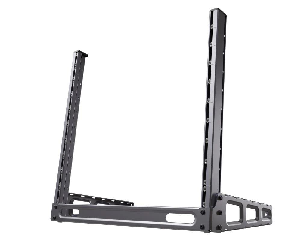 A 19” 10U desktop rack with adjustable angle and additional space for cable management.