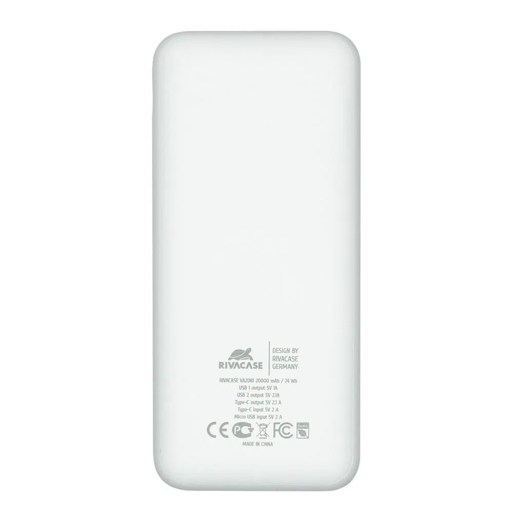 | Tootja koduleht | https://rivacase.com/en/products/power-accessories/portable-rechargeable-batteries/VA2081-20000-mAh-White-EU-portable-battery |