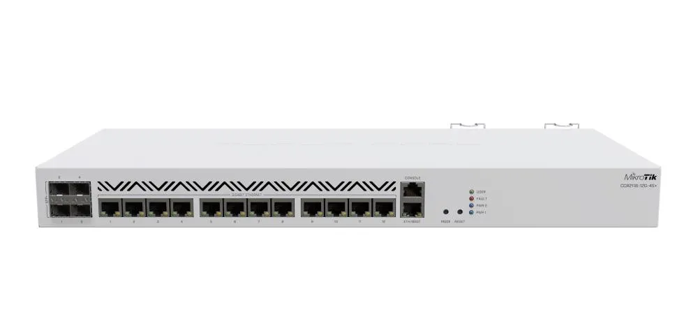 | Summary | Mikrotik CCR2116-12G-4S+. Ethernet interface type: Gigabit Ethernet, Ethernet LAN data rates: 10,100,1000 Mbit/s. Compliance certificates: CE, RoHS. Processor frequency: 2000 MHz, Internal memory type: DDR4, Mean time between failures (MTBF): 200000 h. Product colour: White. Power consumption (typical): 72 W, AC input voltage: 100 - 240 V |