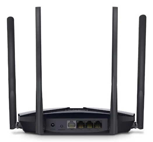 | Summary | Mercusys AX3000 Dual-Band Wi-Fi 6 Router. WAN connection type: RJ-45. Wi-Fi band: Dual-band (2.4 GHz / 5 GHz), Top Wi-Fi standard: Wi-Fi 6 (802.11ax), WLAN data transfer rate (max): 3000 Mbit/s. Ethernet LAN interface type: Gigabit Ethernet, Ethernet LAN data rates: 10,100,1000 Mbit/s, Cabling technology: 10/100/1000Base-T(X). Security algorithms: WEP, WPA, WPA2, WPA3, Firewall security: SPI Firewall, IP and MAC Address Binding, NAT functionality: Port Forwarding, Port Triggering, UPnP, DMZ. Product type: Tabletop router, Product colour: Black, LED indicators: LAN, WAN |