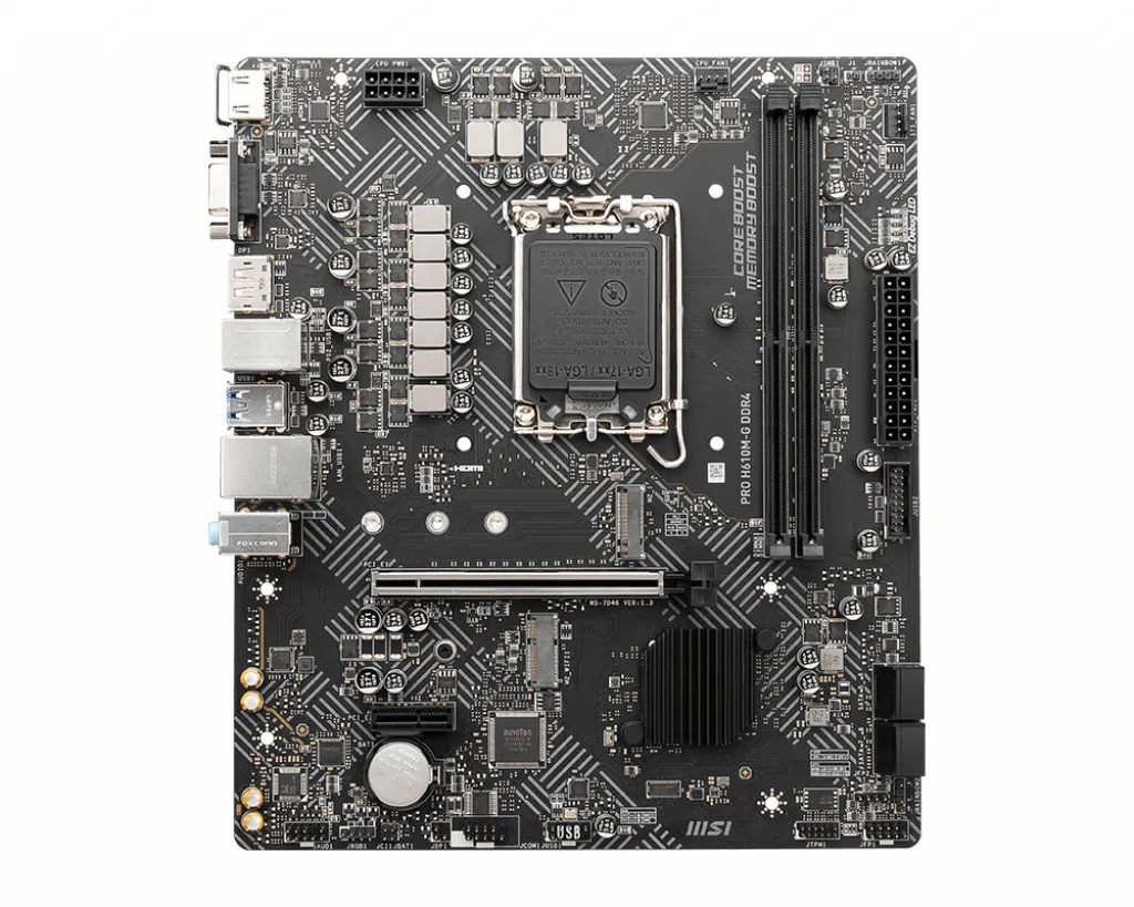 MSI PRO H610M-G DDR4. Protsessori tootja: Intel, Protsessori pesa: LGA 1700, Ühilduvad protsessoriseeriad: Intel® Core™ i9. Toetatud mälutüübid: DDR4-SDRAM, Maksimaalne sisemälu: 64 GB, Mälupesa tüüp: DIMM. Kõvaketta ühenduse tüüp: M.2, SATA III, Toetatud ketaste tüübid: SSD. Ethernet-liidese tüüp: Gigabit Ethernet. Komponent: PC, Emaplaadi kujutegur: Mikro ATX, Emaplaadi kiibistik: Intel