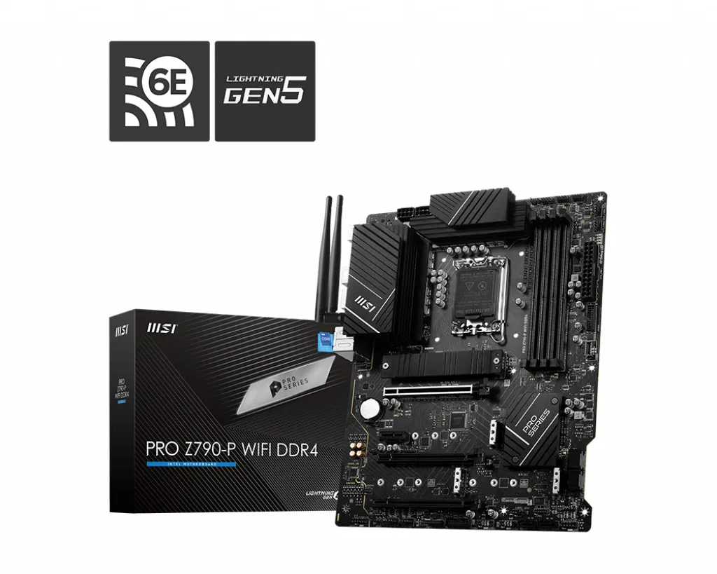 MSI PRO Z790-P WIFI. Protsessori tootja: Intel, Protsessori pesa: LGA 1700, Ühilduvad protsessoriseeriad: Intel® Celeron®, Intel® Pentium® Gold. Toetatud mälutüübid: DDR5-SDRAM, Maksimaalne sisemälu: 128 GB, ECC ühilduvus: Mitte-ECC. Kõvaketta ühenduse tüüp: M.2, PCI Express, Toetatud ketaste tüübid: HDD & SSD, Sisemine mälumaht: 10 GB. Ethernet-liidese tüüp: 2.5 Gigabit Ethernet, Wi-Fi standard: Wi-Fi 6 (802.11ax), WiFi-standardid: 802.11a, 802.11b, 802.11g, Wi-Fi 4 (802.11n), Wi-Fi 6 (802.11ax). Komponent: PC, Emaplaadi kujutegur: ATX, Emaplaadi kiibistik: Intel