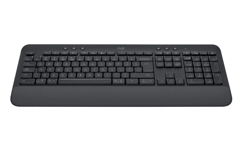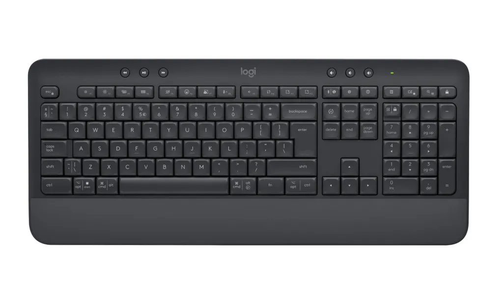 Logitech 920-010945. Klaviatuuri kujutegur: Täissuuruses (100%). Klaviatuuri stiil: Sirge. Ühenduvustehnoloogia: Juhtmevaba, Seadme liides: Bluetooth, Klaviatuuri klahvilüliti: Membraaniga klahvlüliti, Klaviatuuri paigutus: QWERTY. Randmetugi. Soovituslik kasutus: Kontor. Toote värv: Grafiit
