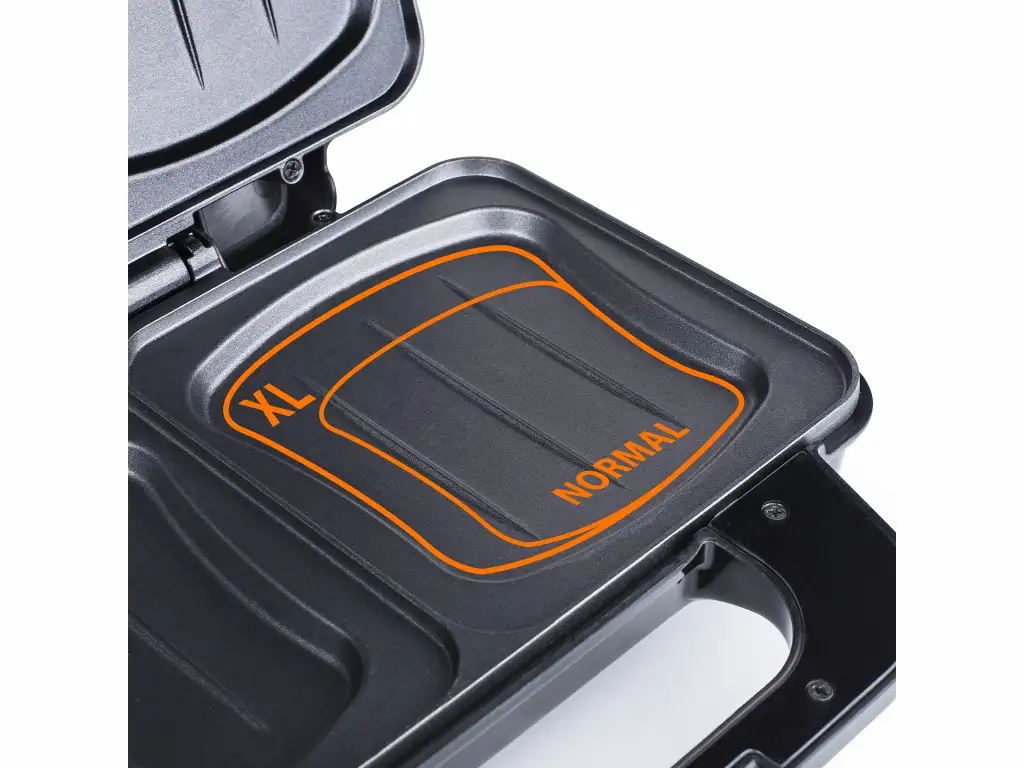 Extra deep shell plates; Non-stick coating; With power on and ready indicator lights; Lid with safety lock; Anti slip feet; Cord storage