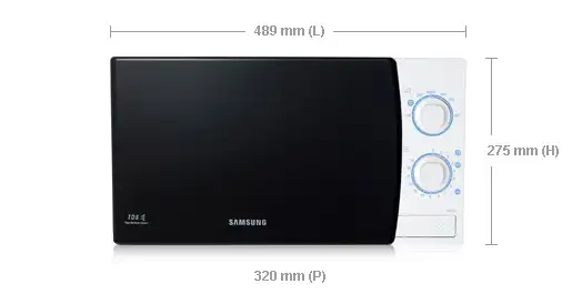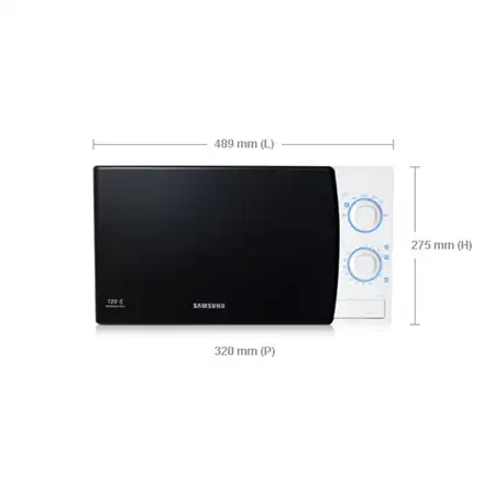 Samsung ME 711 K. Karbikujundus: Lauapealne, Sisemahutavus: 20 l, Mikrolainevõimsus: 800 W. Ühendatud koormus: 1150 W. Laius: 489 mm, Sügavus: 344 mm, Kõrgus: 275 mm. Pakendi mõõtmed (l x s x k): 552 x 413 x 329 mm
