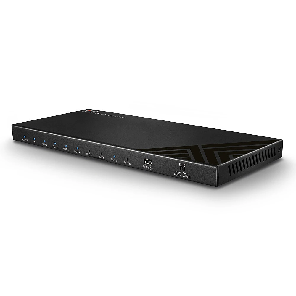 Lindy 38237. Videopordi tüüp: HDMI, Videoväljund: 8x HDMI. Maksimaalne resolutsioon: 3840 x 2160 pikslit, Toote värv: Must, Korpuse materjal: Metall. AC-sisendpinge: 12 V. Laius: 243 mm, Sügavus: 102 mm, Kõrgus: 16 mm. Pakendi laius: 277 mm, Pakendi sügavus: 183 mm, Pakendi kõrgus: 68 mm