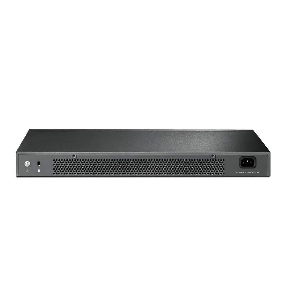 | Summary | TP-Link Omada 48-Port Gigabit L2+ Managed Switch with 4 10GE SFP+ Slots. Switch type: Managed, Switch layer: L2+. Basic switching RJ-45 Ethernet ports type: Gigabit Ethernet (10/100/1000), Basic switching RJ-45 Ethernet ports quantity: 48, Console port: RJ-45/Micro-USB. MAC address table: 16000 entries, Switching capacity: 176 Gbit/s. Networking standards: IEEE 802.1D, IEEE 802.1Q, IEEE 802.1s, IEEE 802.1w, IEEE 802.3ad. Power connector: AC-in jack. Rack mounting, Form factor: 1U |