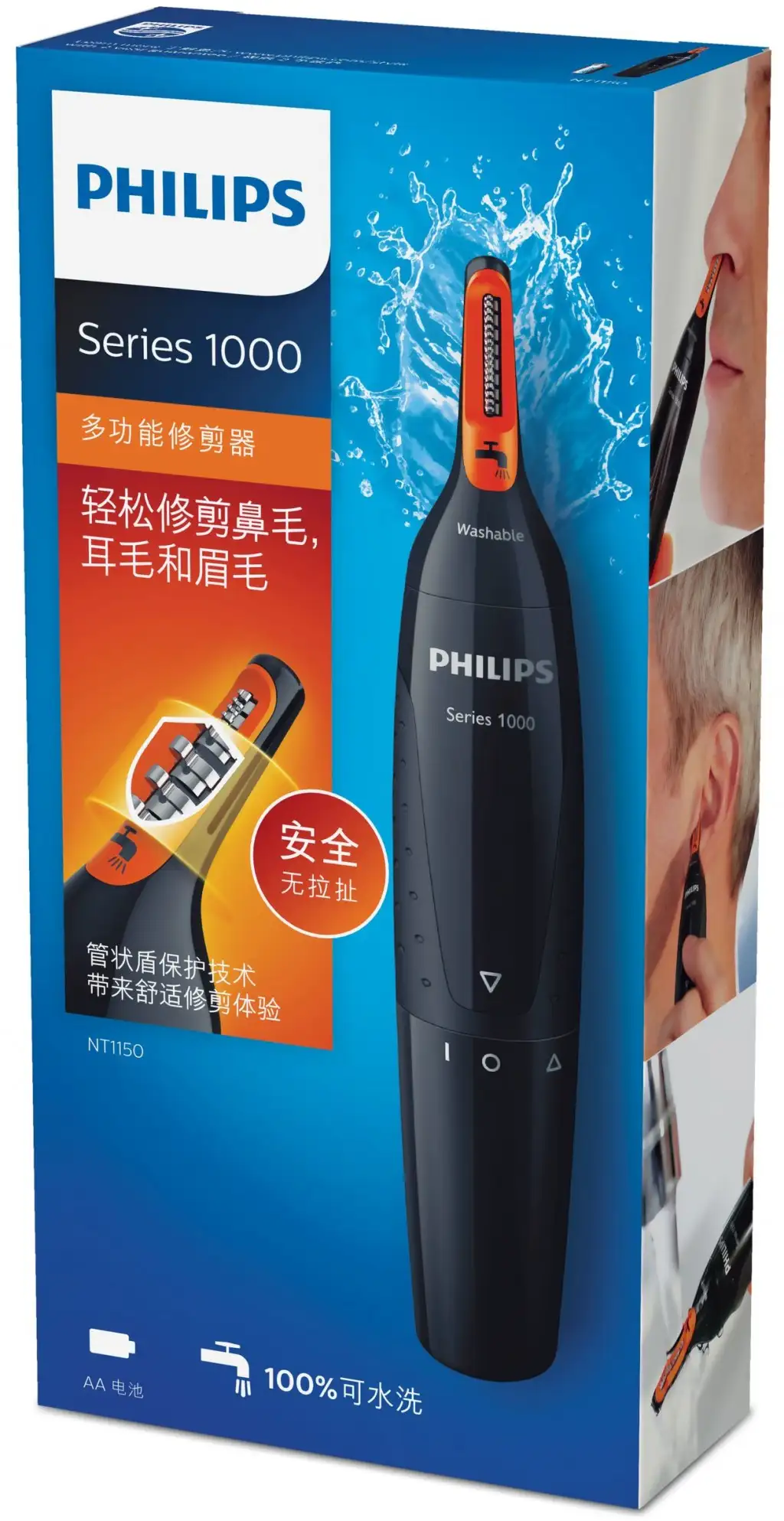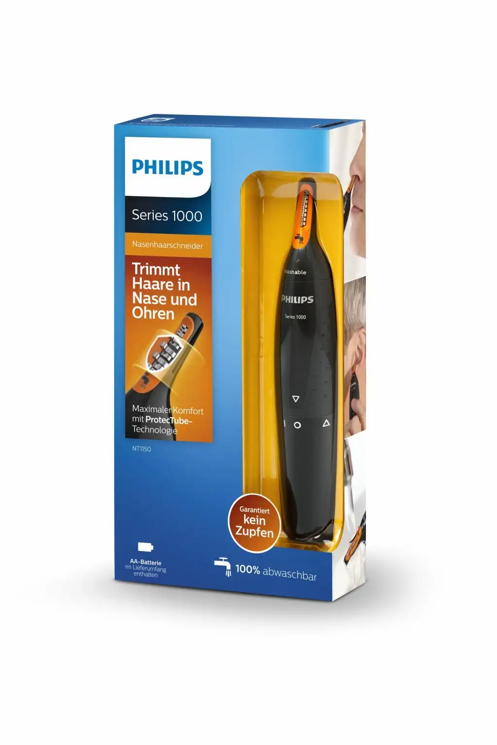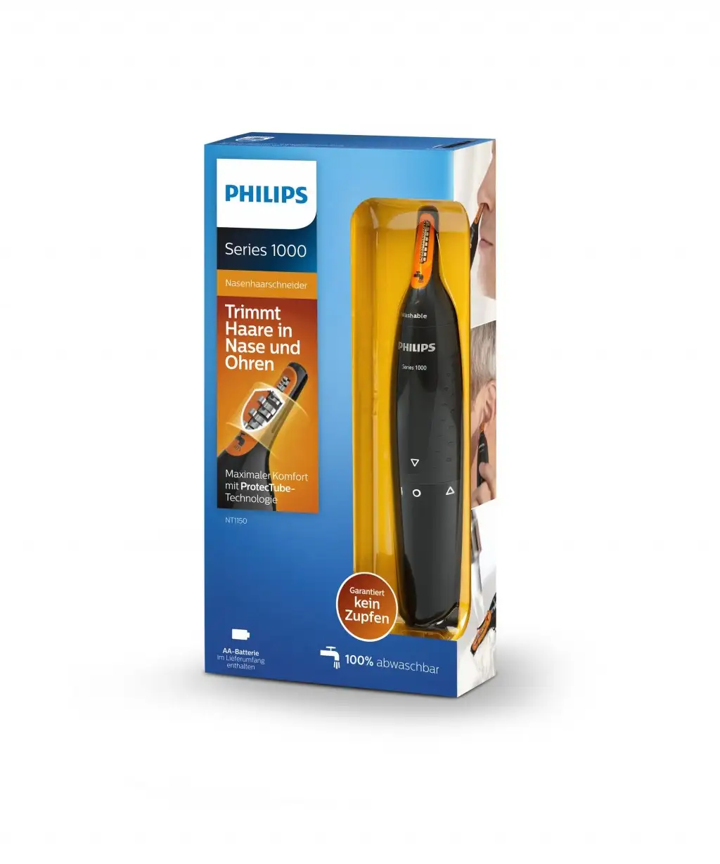 Philips Norelco NOSETRIMMER Series 1000 Mugav nina- ja kõrvakarvade piirel. Täpsustrimmeri otstarve: Kõrv, Nina. Toote värv: Must, Korpuse materjal: Plast. Aku tüüp: AA