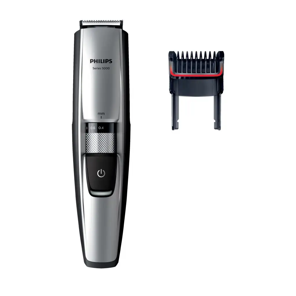 Philips BT5205/16, BEARDTRIMMER Series 5000. Minimaalne juuksepikkus: 0,4 mm, Maksimaalne juuksepikkus: 7 mm. Toote värv: Kroom, Tera materjal: Süsinikteras. Toiteallikas: Elektritoide/akutoide, Tööaeg: 70 min, Aku tüüp: Sisseehitatud