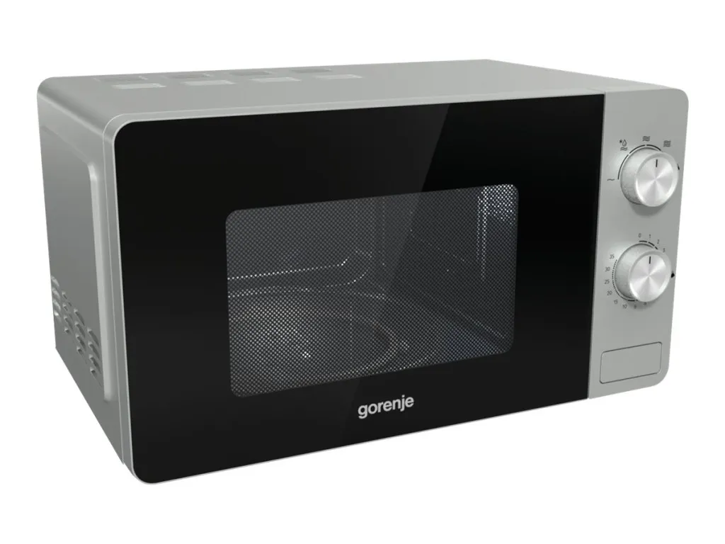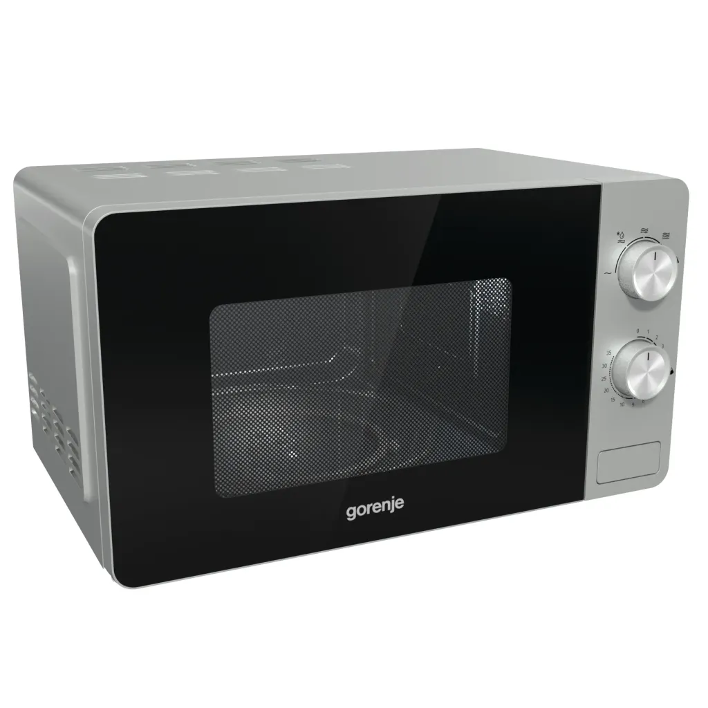 Gorenje MO20E1S. Seadme paigaldus: Eraldiseisev, Toote tüüp: Eraldiseisev mikrolaineahi, Sisemahutavus: 20 l, Mikrolainevõimsus: 800 W, Kontrolli tüüp: Pöörlev, Toote värv: Must, Roostevaba teras