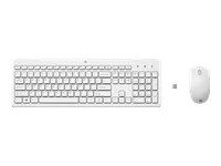 HP 230 Wireless Mouse and Keyboard Combo. Klaviatuuri kujutegur: Täissuuruses (100%), Ühenduvustehnoloogia: Juhtmevaba, Seadme liides: Raadioside, Klaviatuuri klahvilüliti: Membraaniga klahvlüliti. Toote värv: Valge. Hiir kaasa arvatud