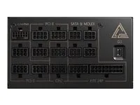 MSI MEG AI1300P PCIE5. Koguvõimsus: 1300 W, AC-sisendpinge: 100 - 240 V, AC-sisendsagedus: 50 - 60 Hz. Emaplaadi toitepistmik: 24-pin ATX, Emaplaadi toitekaabli pikkus: 60 cm, Kaabelduse tüüp: Täielikult modulaarne. Otstarve: PC, Toiteploki (PSU) standard: ATX, 80 PLUS sertifikaat: 80 PLUS Gold. Toote värv: Must, Jahutuse tüüp: Aktiivne, Ventilaatori läbimõõt: 12 cm. Laius: 150 mm, Sügavus: 16 mm, Kõrgus: 86 mm