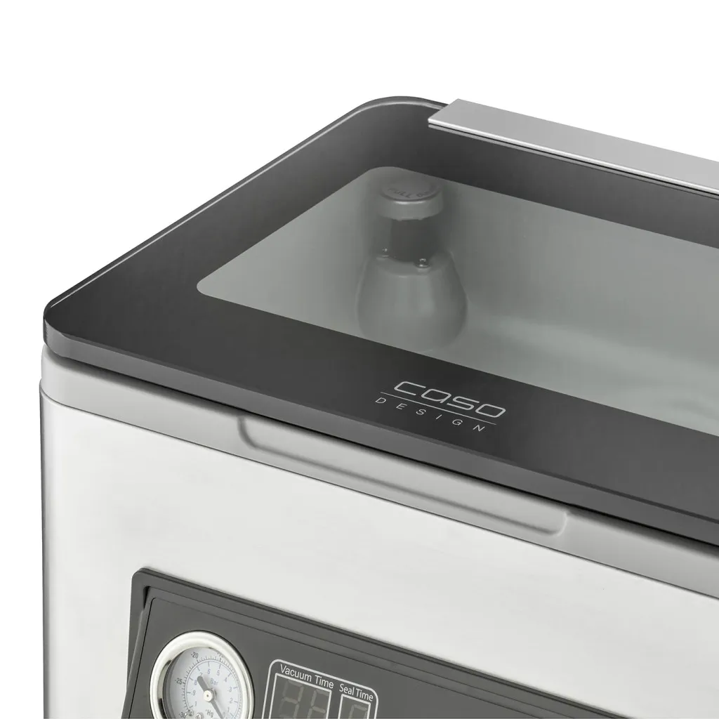 | Muud funktsioonid | Compact chamber vacuum sealer – ideal for hard, soft, dry and liquid food; Powerful, fast 4-piston vacuum pump with 70 l / min (achievable vacuum pressure: 0.95 bar); High-quality manometer for displaying the current vacuum in the vacuum chamber |