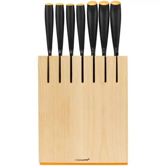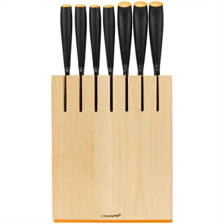 | Knife type | The knife block includes a Fruit knife, Paring knife, Tomato knife, Small cook’s knife (12 cm), Asian cook’s knife, Large cook’s knife (20cm) and Bread knife |