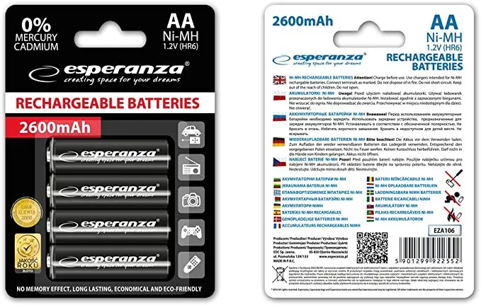ESPERANZA EZA106 - RECHARGEABLE BATTERIES Ni-MH AA 2600MAH 4PCS