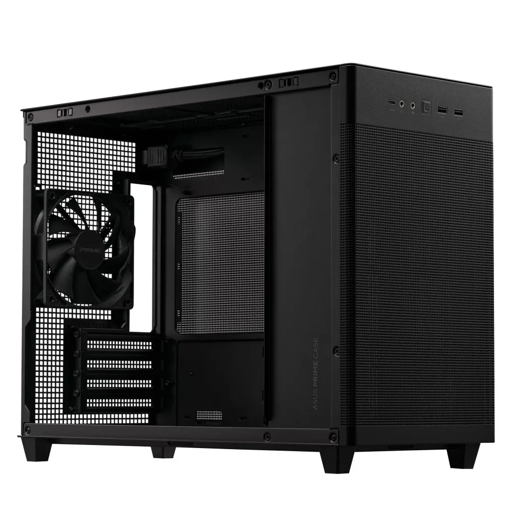 ASUS AP201 PRIME CASE TG. Toote kuju: Mini Tower, Tüüp: PC, Toote värv: Must. Installitud tagaventilaatorid: 1x 120 mm, Toetatud tagaventilaatorite läbimõõt: 120 mm, Toetatud ülemiste ventilaatorite läbimõõt: 120,140 mm. Toetatud kõvakettasuurused: 2.5,3.5". Laius: 205 mm, Sügavus: 350 mm, Kõrgus: 460 mm