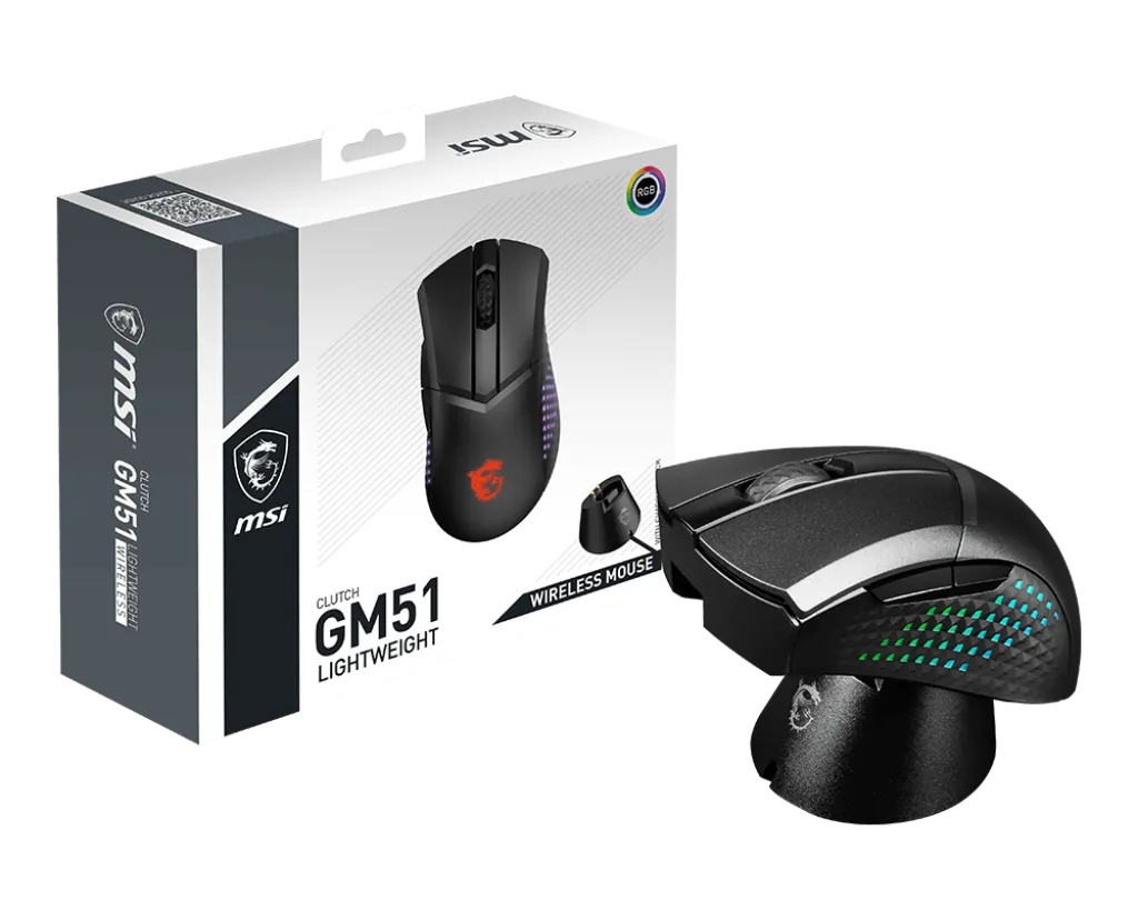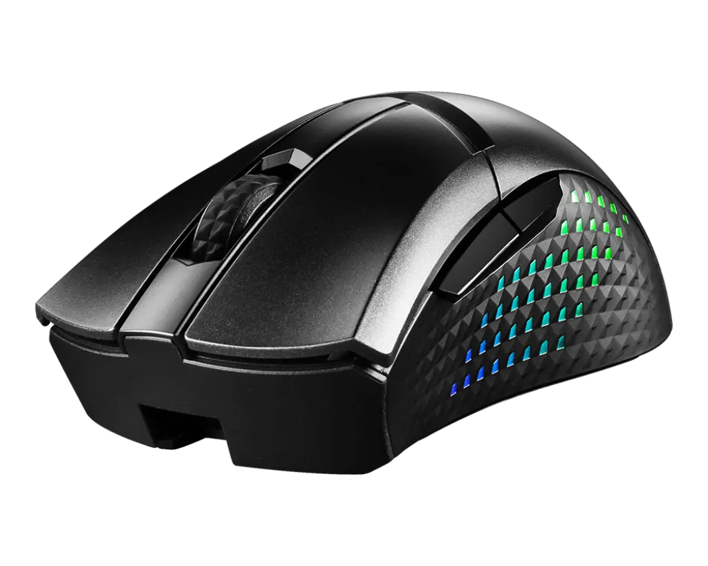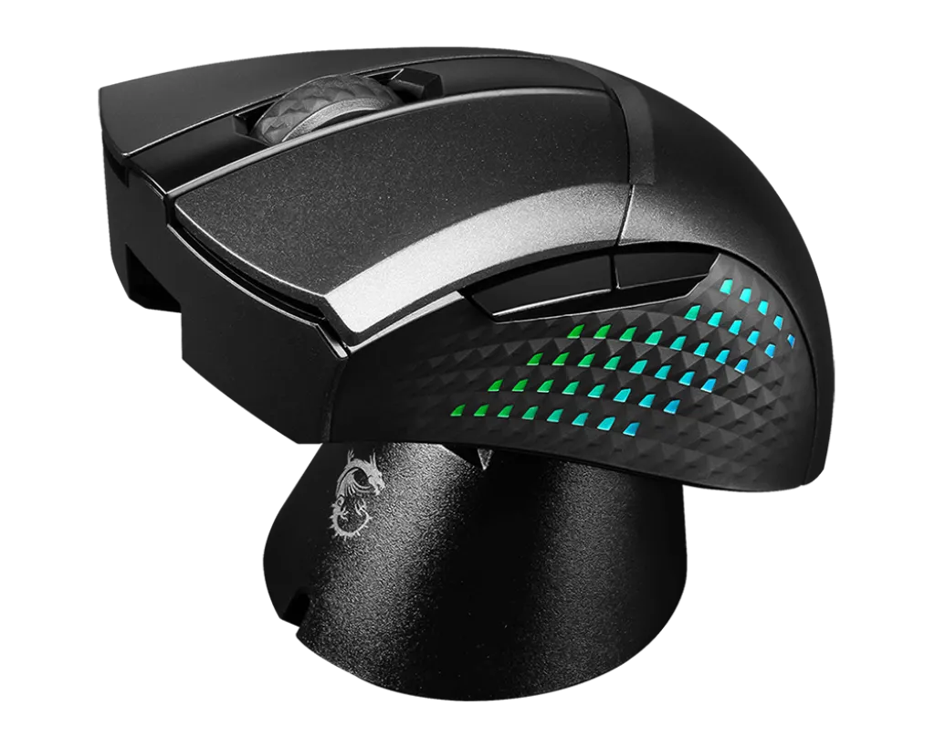 Supports two advanced charging solutions, MSI SNAP CHARGING and the MSI charging dock. MSI Diamond LightGrips features an anti-slip surface that allows gamers to hold the mouse firmly in hand, with fully customizable RGB illumination. Battery life Up to 150 hours (without the RGB lighting)