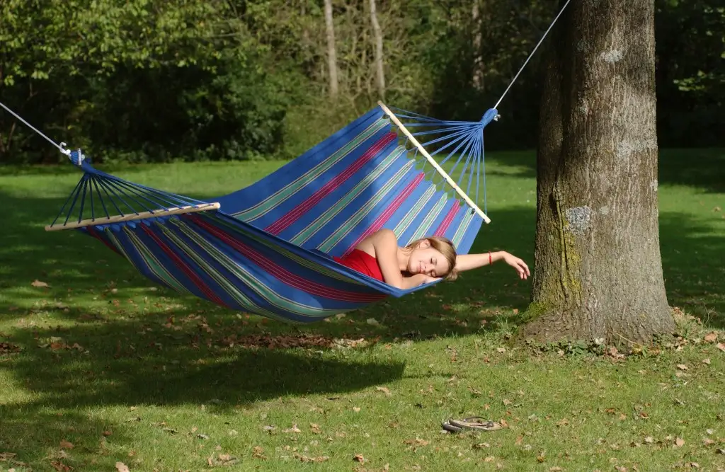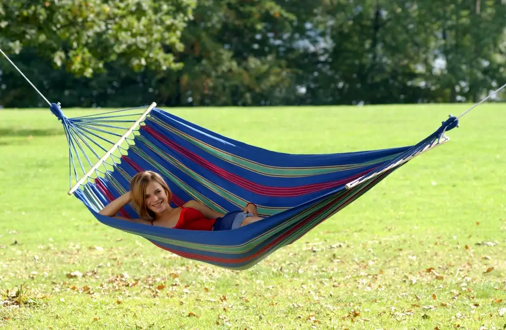 Hammock made of weatherproof and UV-resistant EllTex material, which is extra long lasting and yet as soft as cotton.
