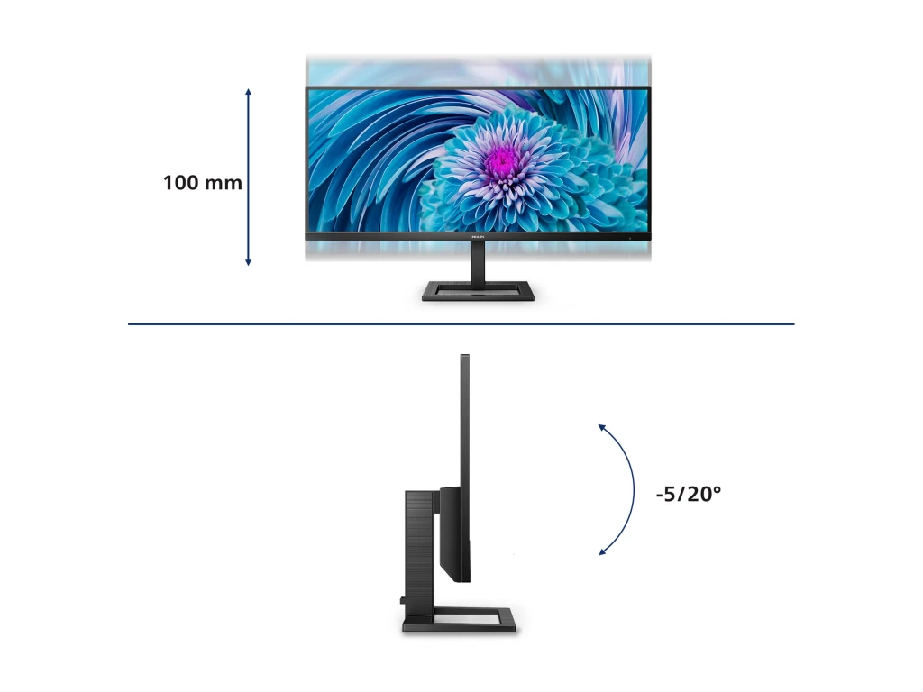Philips E Line 346E2LAE/00. Ekraani diagonaal: 86,4 cm (34"), Ekraani resolutsioon: 3440 x 1440 pikslit, HD tüüp: Wide Quad HD, Ekraani tehnoloogia: LCD, Reaktsiooniaeg: 4 ms, Loomulik kuvasuhe: 21:9, Vaatenurk, horisontaalne: 178°, Vaatenurk, vertikaalne: 178°. Sisseehitatud kõlar(id). Sisseehitatud USB-jaotur, USB-jaoturi versioon: 3.2 Gen 1 (3.1 Gen 1). VESA paigaldamine, Kõrguse reguleerimine. Toote värv: Must