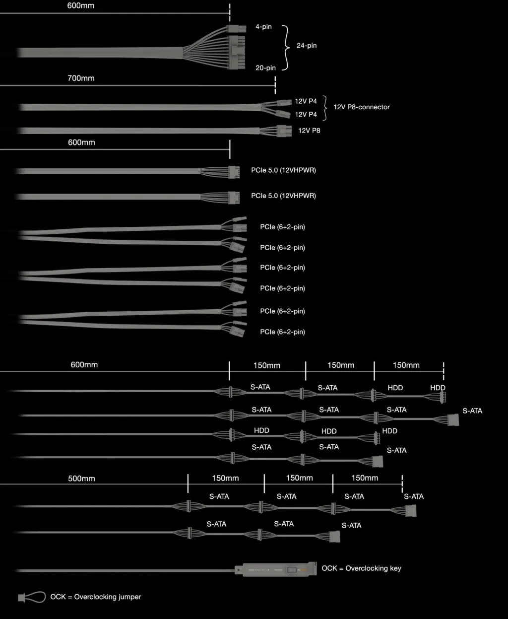 | PCI Express power cable length | 600 mm |