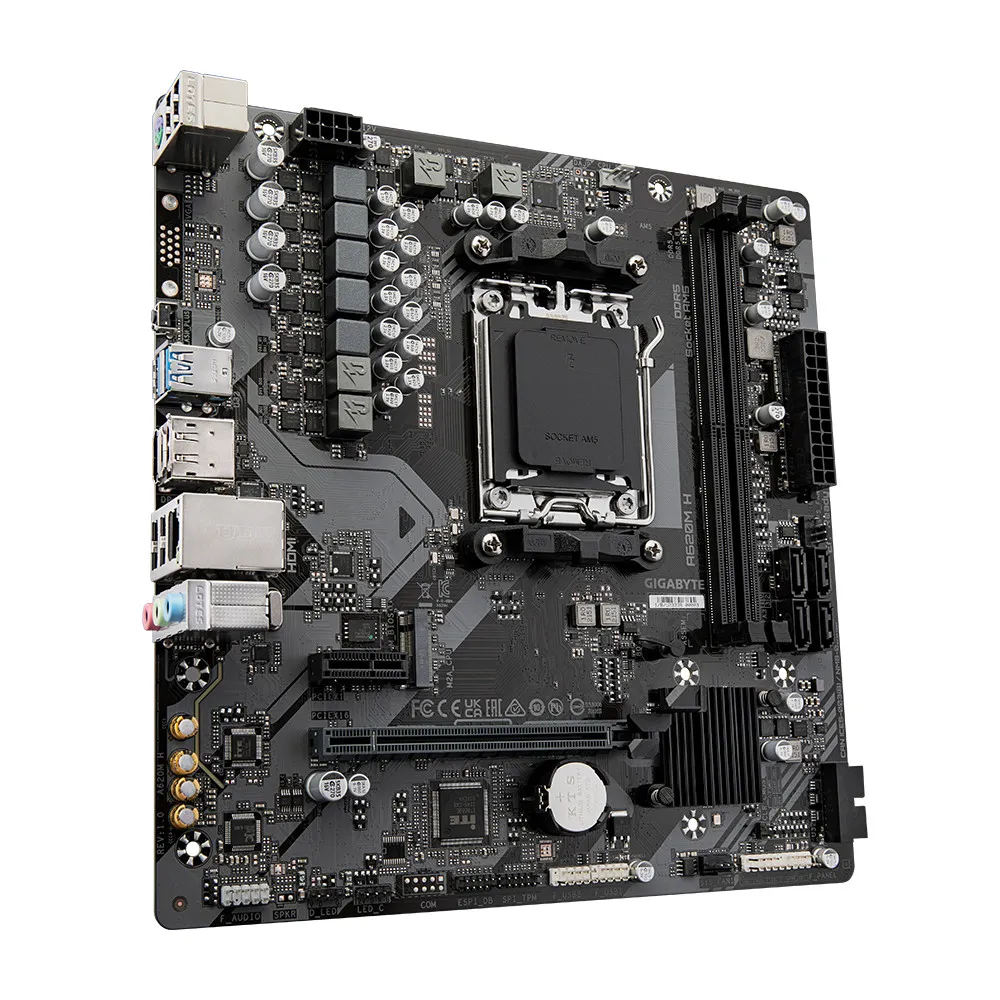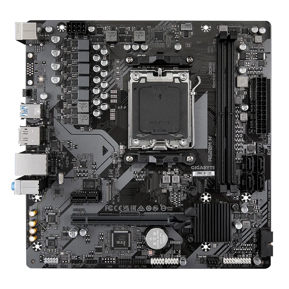 Gigabyte A620M H (rev. 1.0). Protsessori tootja: AMD, Protsessori pesa: Protsessoripesa AM5, Ühilduvad protsessoriseeriad: AMD Ryzen™ 5, AMD Ryzen 7 7th Gen, AMD Ryzen 9 7th Gen. Toetatud mälutüübid: DDR5-SDRAM, Maksimaalne sisemälu: 96 GB, Mälupesa tüüp: DIMM. Kõvaketta ühenduse tüüp: M.2, SATA III, Toetatud ketaste tüübid: HDD & SSD, RAID-tasemed: 0, 1, 10. Maksimaalne resolutsioon: 4096 x 2160 pikslit. USB-pistmiku tüüp: USB tüüp A, USB tüüp-C