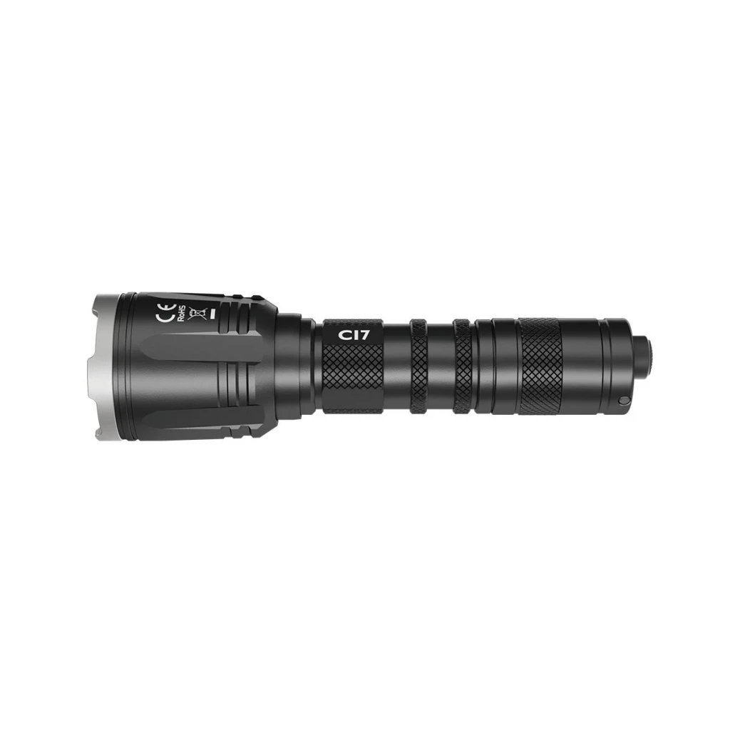 The NITECORE CI7 is the ultimate flashlight for night vision hunting or outdoor operations. This dual-output flashlight pushes an incredibly bright 2500 lumens of light, reaching over 300 yards. Rotating the flashlight head instantly turns the CI7 into an adjustable 7000mw long-range IR illuminator. This 940nm IR light is invisible to the human eye, and can only be detected by night vision or thermal vision. Providing both high power infrared and white light, this light enables you to quickly switch from stealth maneuvers to swift actions, which makes CI7 an indispensable tool for scouting, search and rescue, hunting, and law enforcement. The user-friendly NITECORE CI7 is designed to get you the right kind and amount of light you need when you need it. The end cap tail switch is capable of momentary-on and constant-on for both white and IR light. The improved “Strobe Ready” mode switch provides instant turbo or strobe access and cycles through brightness settings while preventing accidental activation. The CI7 comes with all the standard features you expect on a NITECORE flashlight, IP68 waterproof, mode memory, high-efficiency constant current, and advanced temperature regulation, the CI7 is an ideal flashlight.