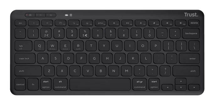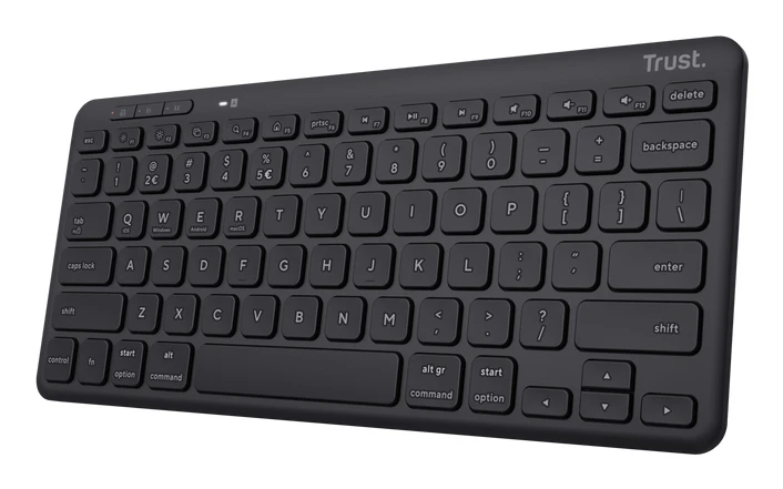 Trust Lyra. Klaviatuuri kujutegur: Mini. Klaviatuuri stiil: Sirge. Ühenduvustehnoloogia: Juhtmevaba, Seadme liides: RF juhtmeta ühendus + Bluetooth, Klaviatuuri klahvilüliti: Käärlüliti, Klaviatuuri paigutus: QWERTY, Soovituslik kasutus: Universaalne. Toote värv: Must