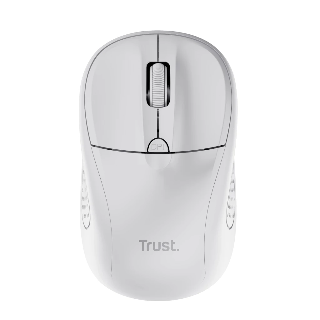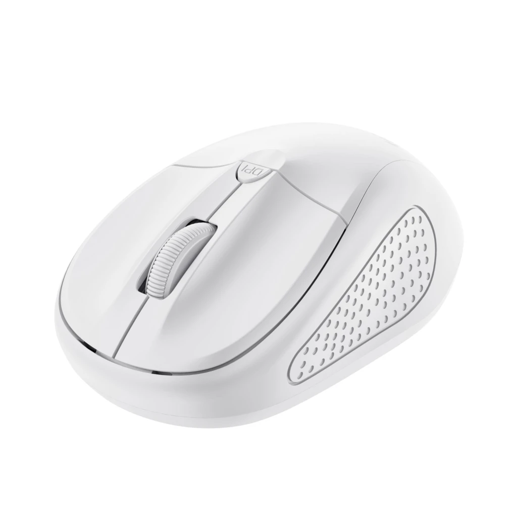 Trust Primo. Toote kuju: Mõlemakäeline. Liikumistuvastuse tehnoloogia: Optiline, Seadme liides: Raadioside, Liikumise resolutsioon: 1600 DPI, Klahvide tüüp: Sissevajutatavad nupud, Nuppude arv: 4, Skrolli tüüp: Ratas. Toiteallikas: Patareid. Toote värv: Valge