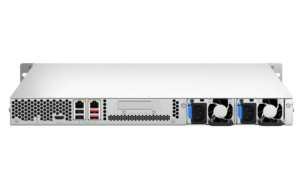 Powered by an Intel® Celeron® N5105/N5095 quad-core processor (burst up to 2.9GHz), the TS-464U-RP features two 2.5GbE RJ45 ports and Port Trunking for up to 5Gbps combined bandwidth. The built-in 4K HDMI output allows for multimedia and virtual machine display. With a PCIe Gen 3 slot, the TS-464U-RP provides flexibility in extending NAS functionality, allowing you to install various cards: a 10GbE/5GbE network card, QM2 card for M.2 SSD caching, or Edge TPU for AI image recognition. The TS-464U-RP also supports AES 256-bit encryption to ensure the confidentiality of sensitive business data without affecting system performance. The TS-464U-RP also features a redundant power supply to ensure maximum system uptime.
