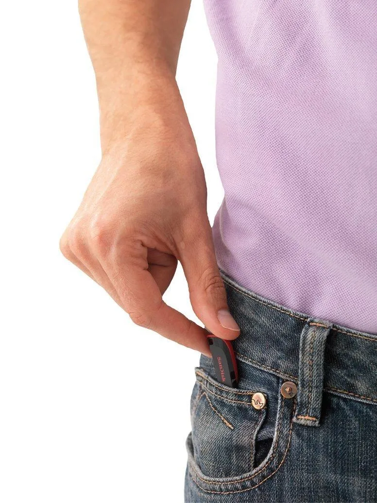 With its stylish, compact design and generous capacity, the Cruzer Blade USB Flash Drive makes it easy to back up, transfer, and share your files. Available in capacities up to 128GB, this USB drive lets you carry your photos, movies, music, and personal data wherever you go.