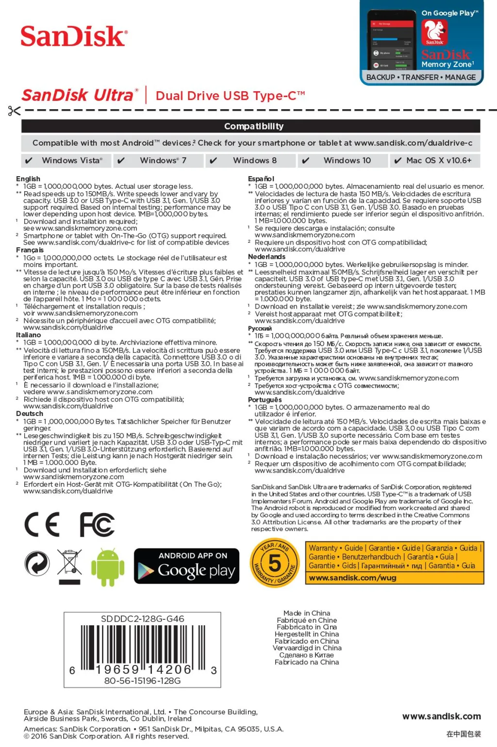 Easily free up space on your smartphone or quickly transfer files between devices at USB 3.1 high speeds of up to 150MB/s. With a reversible USB Type-C connector and a traditional USB connector, the SanDisk Ultra Dual Drive USB Type-C lets you quickly and easily transfer files between smartphones, tablets and computers. Plus the SanDisk Memory Zone app for Android (available on Google Play) helps you manage your device’s memory and your content. The SanDisk Ultra Dual Drive USB Type-C is the perfect liaison between your new USB Type-C device and your devices with traditional USB ports.