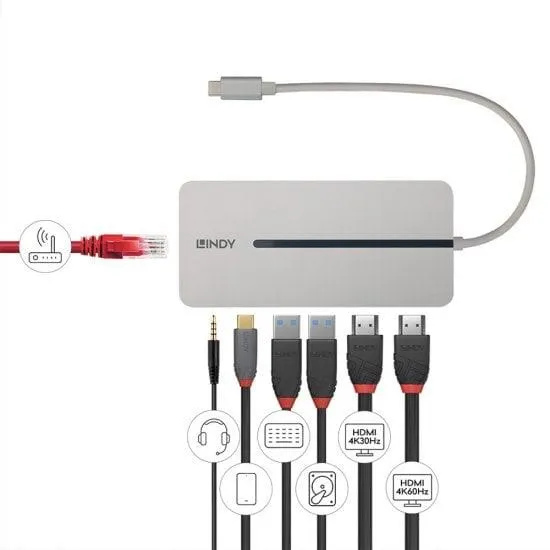 Lindy 43360. Ühenduvustehnoloogia: Juhtmega ühendatud, Hostiliides: USB 3.2 Gen 1 (3.1 Gen 1) Type-C, Kõrvaklappide ühenduvus: 3,5 mm. Toote värv: Hõbe, Valge. Laius: 140 mm, Sügavus: 65 mm, Kõrgus: 20 mm. Kogus pakis: 1 tk, Pakendi laius: 207 mm, Pakendi sügavus: 137 mm