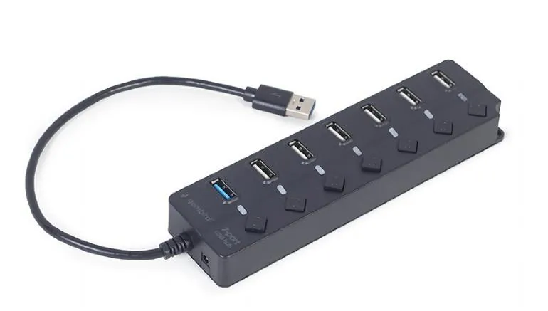 7-port USB hub (1 x USB 3.1 + 6 x USB 2.0) with switches, black