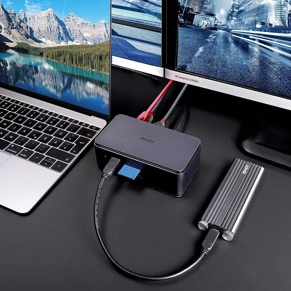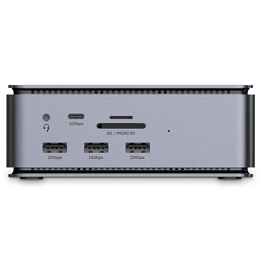 Lindy 43372. Ühenduvustehnoloogia: Dokkimine, Hostiliides: USB4, USB Power Delivery kuni: 100 W. Ethernet LAN-i andmeedastuskiirused: 1000 Mbit/s. Toote värv: Söehall, Ühilduvad mälukaardid: MicroSD (TransFlash), SD, Andmeedastuskiirus: 1 Gbit/s. Toiteallika tüüp: USB, Elektritarbimine (max): 20 W. Laius: 129 mm, Sügavus: 69,5 mm, Kõrgus: 48 mm
