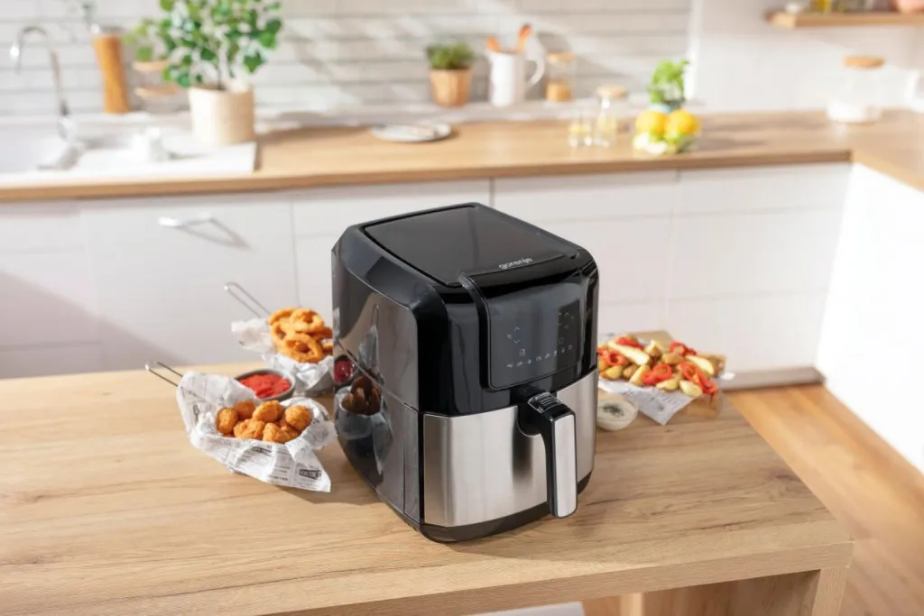 Gorenje AF1700DB. Toote tüüp: Kuumaõhu fritüür, Maht: 5 l, Temperatuur (min): 80 °C. Disaini tüüp: Üksik, Toote värv: Must, Metallik, Kontrolli tüüp: Puudutus. Kuvamise tüüp: LED. Võimsus: 1700 W. Laius: 291 mm, Sügavus: 335 mm, Kõrgus: 365 mm