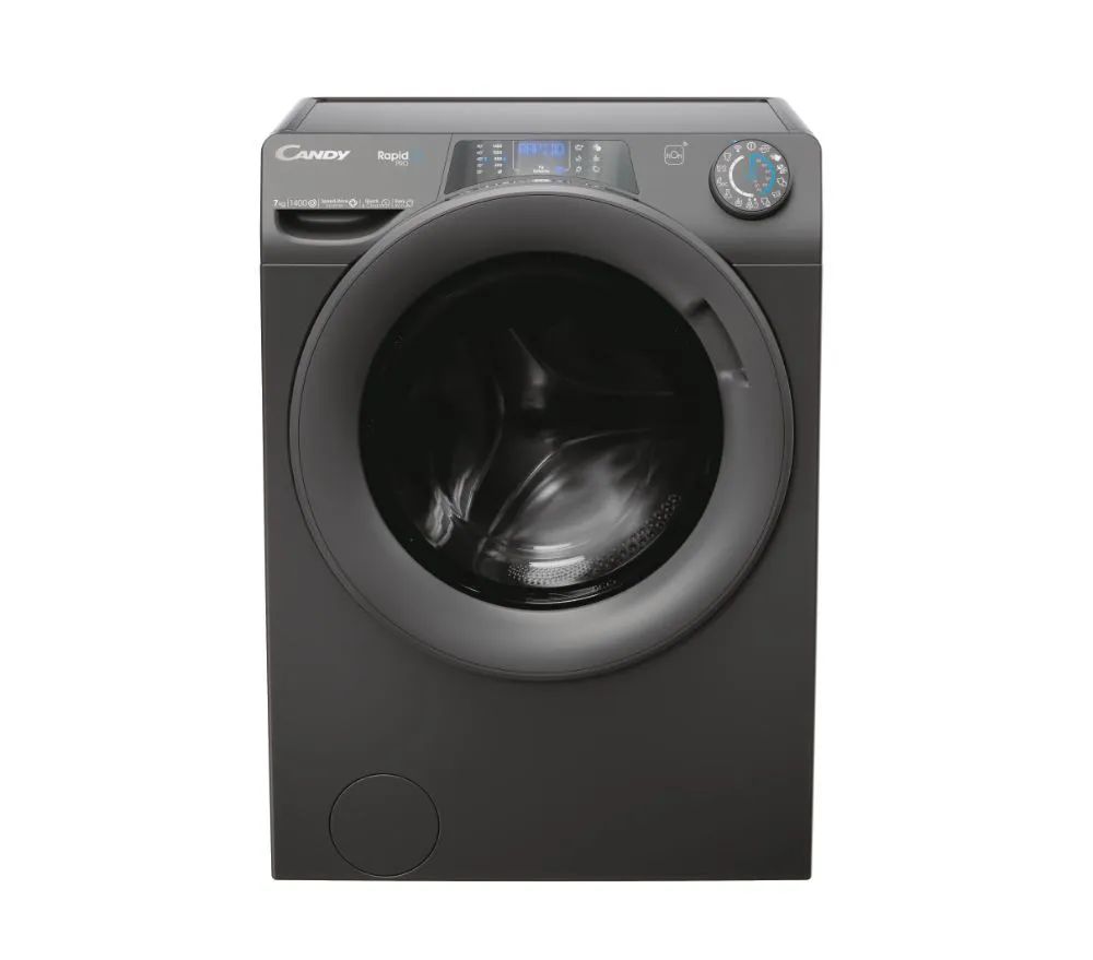 Candy RapidÓ PRO RP4 476BWMRR/1-S. Laadimistüüp: Eest täidetav. Nimitäitekogus: 7 kg, Tsentrifuugimise klass: B, Müratase (tsentrifuugimisel): 77 dB, Maksimaalne pöörlemiskiirus: 1400 RPM. Toote värv: Söehall. Laius: 600 mm, Sügavus: 450 mm, Kõrgus: 850 mm. Energiatõhususe klass: A