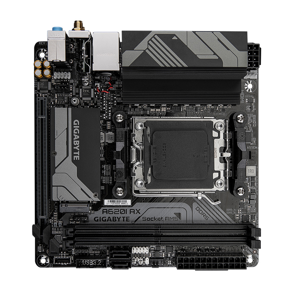 Gigabyte A620I AX. Protsessori tootja: AMD, Protsessori pesa: Protsessoripesa AM5, Ühilduvad protsessoriseeriad: AMD Ryzen 5 7th Gen, AMD Ryzen 7 7th Gen, AMD Ryzen 9 7th Gen. Toetatud mälutüübid: DDR5-SDRAM, Maksimaalne sisemälu: 96 GB, Mälupesa tüüp: DIMM. Kõvaketta ühenduse tüüp: M.2, PCI Express 4.0, SATA III, Toetatud ketaste tüübid: HDD & SSD, RAID-tasemed: 0, 1. Maksimaalne resolutsioon: 4096 x 2160 pikslit. USB-pistmiku tüüp: USB tüüp A, USB tüüp-C