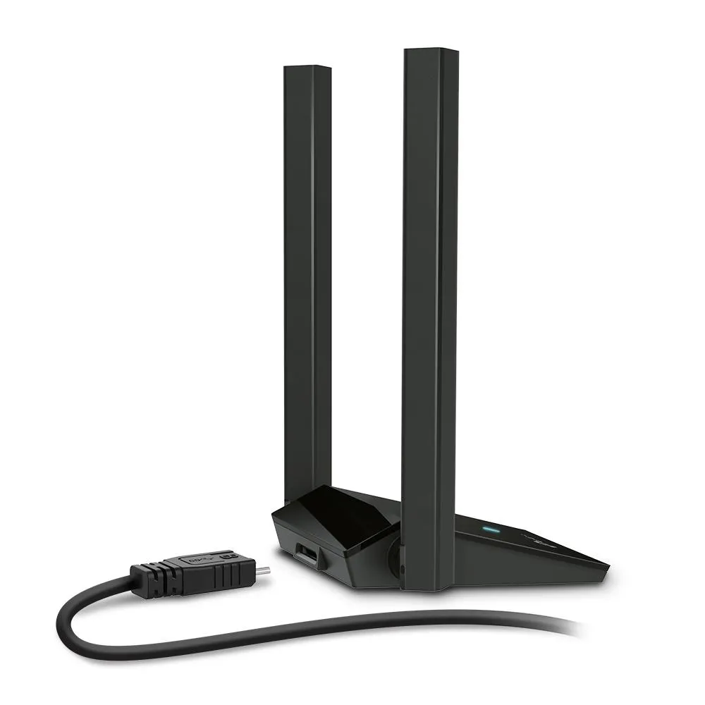 | Summary | TP-Link AX1800 Dual Antennas High Gain Wireless USB Adapter. Connectivity technology: Wireless, Host interface: USB, Interface: WLAN. Maximum data transfer rate: 1800 Mbit/s, Wi-Fi band: Dual-band (2.4 GHz / 5 GHz). Antenna type: External, Product colour: Black |