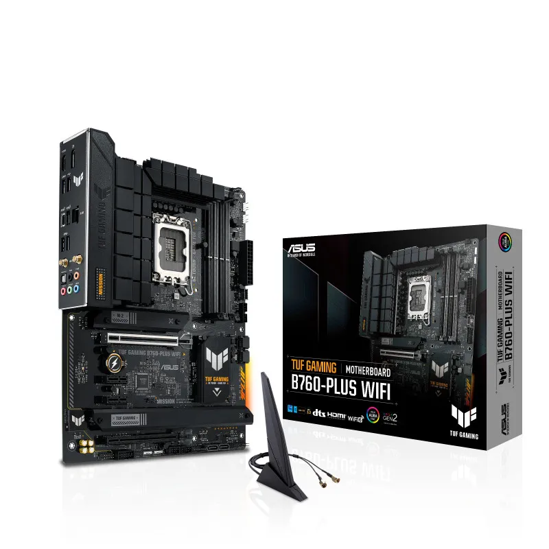 ASUS TUF Gaming B760-Plus WIFI. Protsessori tootja: Intel, Protsessori pesa: LGA 1700, Ühilduvad protsessoriseeriad: Intel® Celeron®, Intel® Core™ i3, Intel® Core™ i5, Intel® Core™ i7. Toetatud mälutüübid: DDR5-SDRAM, Maksimaalne sisemälu: 128 GB, Mälupesa tüüp: DIMM. Kõvaketta ühenduse tüüp: M.2, PCI Express 3.0, PCI Express 5.0, SATA III, Toetatud ketaste tüübid: HDD & SSD, RAID-tasemed: 0, 1, 5, 10. Ethernet-liidese tüüp: 2.5 Gigabit Ethernet, Wi-Fi standard: Wi-Fi 6E (802.11ax), WiFi-standardid: 802.11a, 802.11g, Wi-Fi 4 (802.11n), Wi-Fi 5 (802.11ac), Wi-Fi 6 (802.11ax). Komponent: PC, Emaplaadi kujutegur: ATX, Emaplaadi kiibistik: Intel