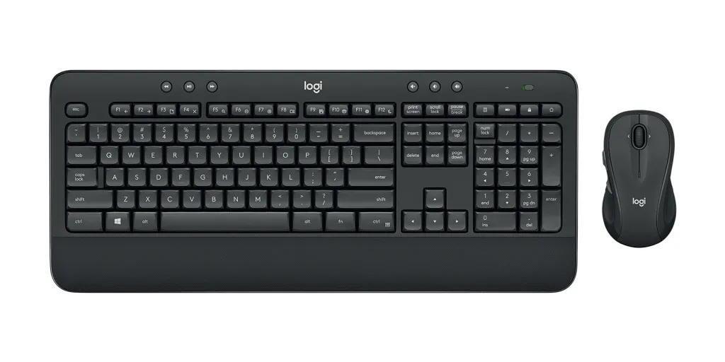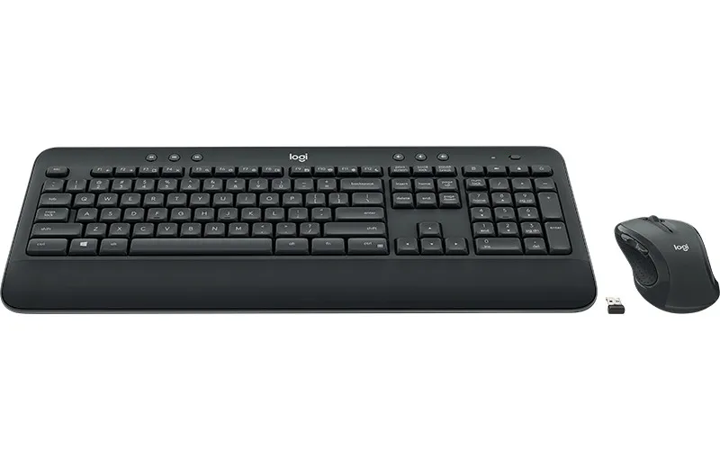 Logitech 920-008923. Klaviatuuri kujutegur: Täissuuruses (100%). Klaviatuuri stiil: Sirge. Ühenduvustehnoloogia: Juhtmevaba, Seadme liides: Raadioside, Klaviatuuri paigutus: QWERTY. Randmetugi. Soovituslik kasutus: Kontor. Toote värv: Must. Hiir kaasa arvatud