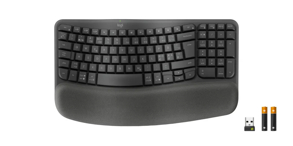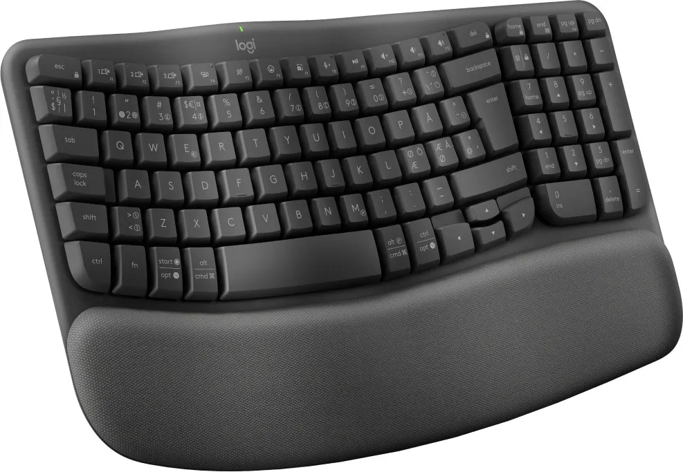 Logitech 920-012332. Klaviatuuri kujutegur: Täissuuruses (100%). Klaviatuuri stiil: Kõver. Ühenduvustehnoloogia: Juhtmevaba, Seadme liides: RF juhtmeta ühendus + Bluetooth, Klaviatuuri klahvilüliti: Membraaniga klahvlüliti, Klaviatuuri paigutus: QWERTY. Randmetugi. Soovituslik kasutus: Kontor. Toote värv: Grafiit
