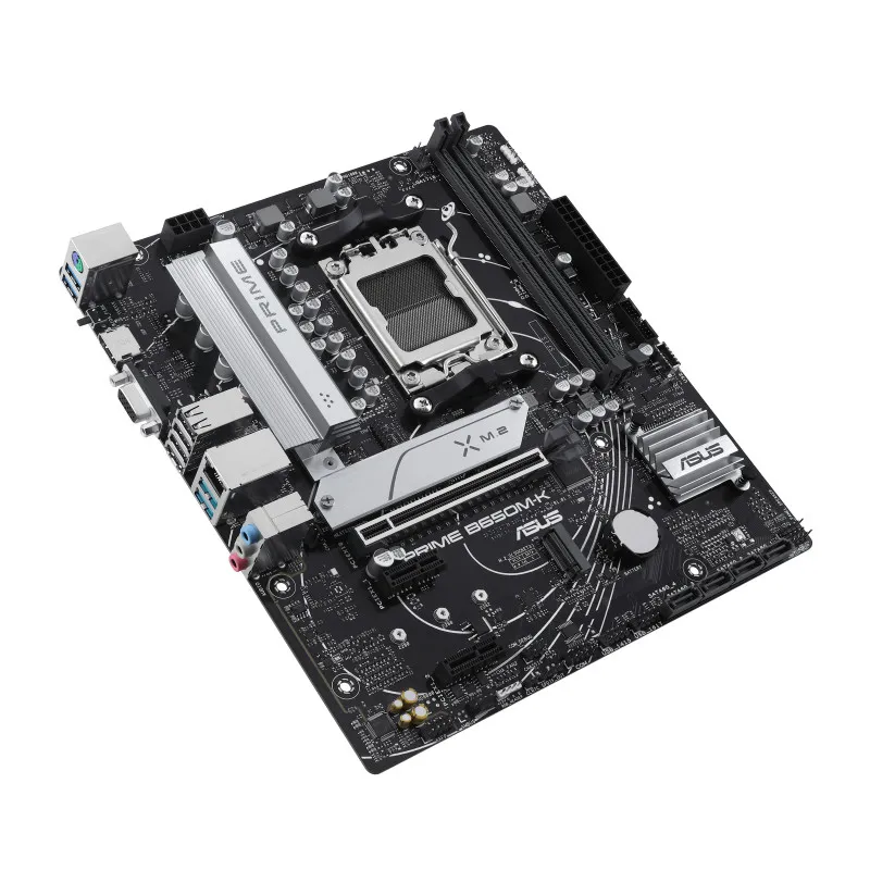 ASUS PRIME B650M-K. Protsessori tootja: AMD, Protsessori pesa: Protsessoripesa AM5, Ühilduvad protsessoriseeriad: AMD Ryzen 7000 Series. Toetatud mälutüübid: DDR5-SDRAM, Maksimaalne sisemälu: 96 GB, Mälupesa tüüp: DIMM. Kõvaketta ühenduse tüüp: M.2, SATA III, Toetatud ketaste tüübid: HDD & SSD, RAID-tasemed: 0, 1, 10. Ethernet-liidese tüüp: 2.5 Gigabit Ethernet. Komponent: PC, Emaplaadi kujutegur: Mikro ATX, Emaplaadi kiibistik: AMD