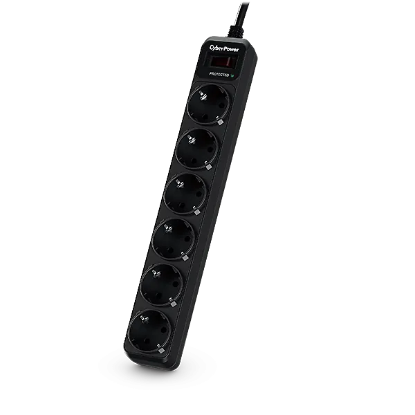 CyberPower B0620SC0-DE. Liigpinge hinnang: 350 J, AC-väljundite arv: 6 vahelduvvoolu kontakt, AC-väljundi tüüp: Tüüp F. Elektripistik: F (Schuko) tüüp. Toote värv: Must, Materjal: Plast, Reaktsiooniaeg: 1 ms. Kaabli pikkus: 1,8 m, Kaal: 375 g, Laius: 49 mm. Pakendi laius: 115 mm, Pakendi sügavus: 45 mm, Pakendi kõrgus: 365 mm