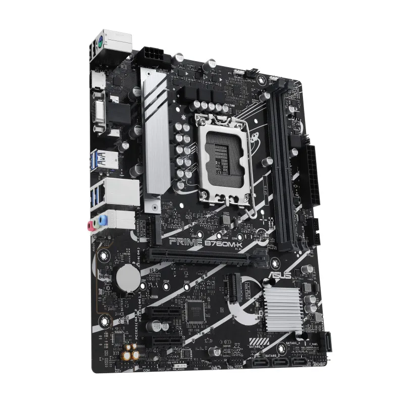 ASUS PRIME B760M-K. Protsessori tootja: Intel, Protsessori pesa: LGA 1700, Ühilduvad protsessoriseeriad: Intel® Celeron®, Intel® Pentium® Gold, Intel® Core™ i3, Intel® Core™ i5, Intel® Core™.... Toetatud mälutüübid: DDR5-SDRAM, Maksimaalne sisemälu: 96 GB, Mälupesa tüüp: DIMM. Kõvaketta ühenduse tüüp: M.2, SATA III, Toetatud ketaste tüübid: HDD & SSD, RAID-tasemed: 0, 1, 5, 10. Ethernet-liidese tüüp: 2.5 Gigabit Ethernet. Komponent: PC, Emaplaadi kujutegur: Mikro ATX, Emaplaadi kiibistik: Intel