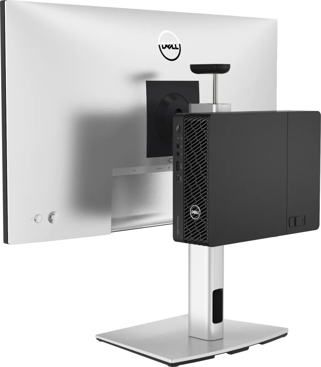 Secure your Precision compact desktop and Dell monitor with an all-in-one stand with effortless setup and a cable management system for a clean workspace.